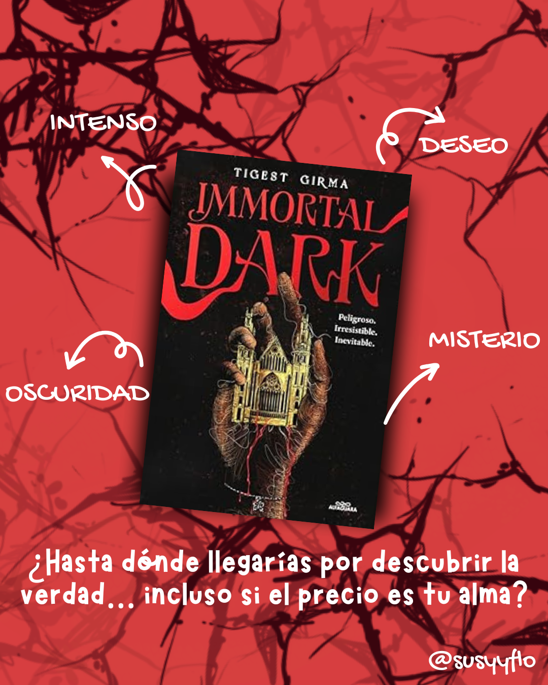 Si buscas una lectura que combine misterio, romance y un toque de oscuridad, Immortal Dark es una novela que, aunque al principio puede costarte engancharte, termina sorprendiéndote de manera muy positiva. No es el tipo de género que suelo leer, y las primeras páginas se me hicieron un poco densas, pero poco a poco te atrapa y te sumerge en un mundo fascinante.